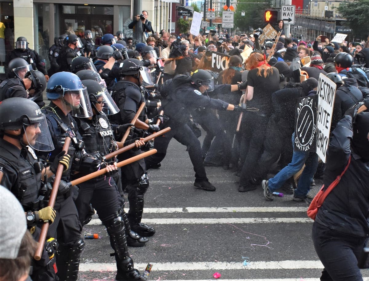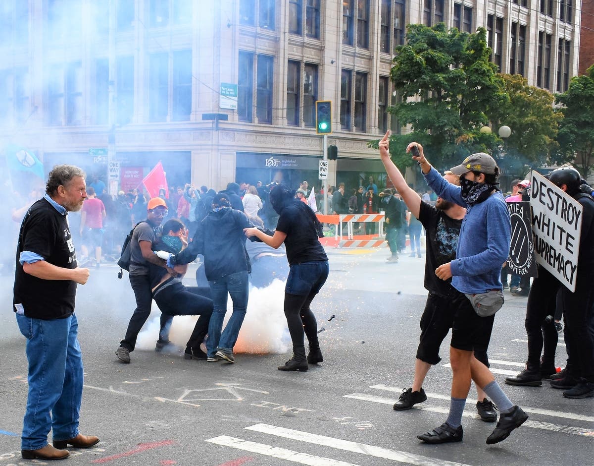 The events in Seattle Sunday were a reaction to Charlottesville, with many counter-protesters decrying fascism, white supremacy and white nationalism. The alt-right group at the center of Sunday's event, Patriot Prayer, has appeared in Seattle and Portland before. Most recently, Patriot Prayer members clashed with anti-fascist protesters after they participated in an "anti-sharia" rally in June.
