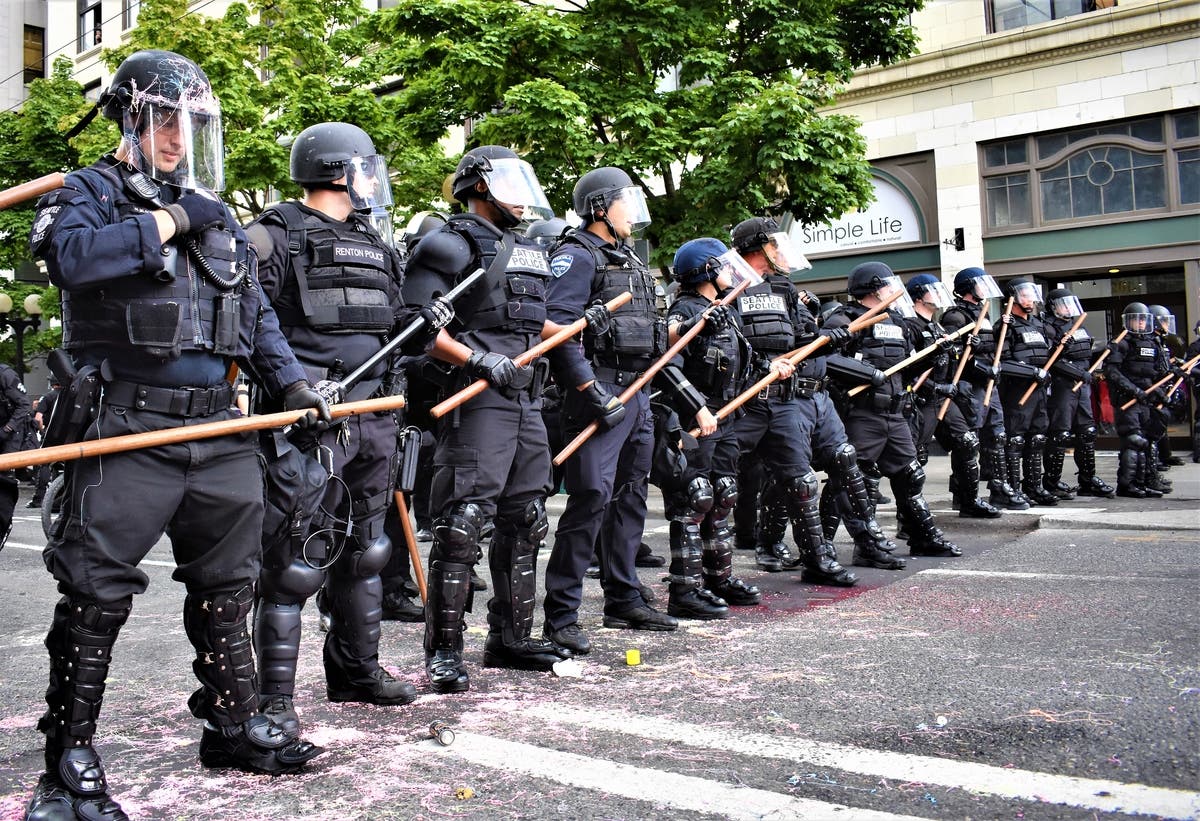 After that third scuffle, the counter-protesters largely backed away from police and dispersed. Throughout the afternoon, the counter-protesters criticized the police for "protecting" the Patriot Prayer group. The police presence at Sunday's rally was large, with officers on scene from Bellevue, Kent, Renton, Tukwila, and the Port of Seattle.