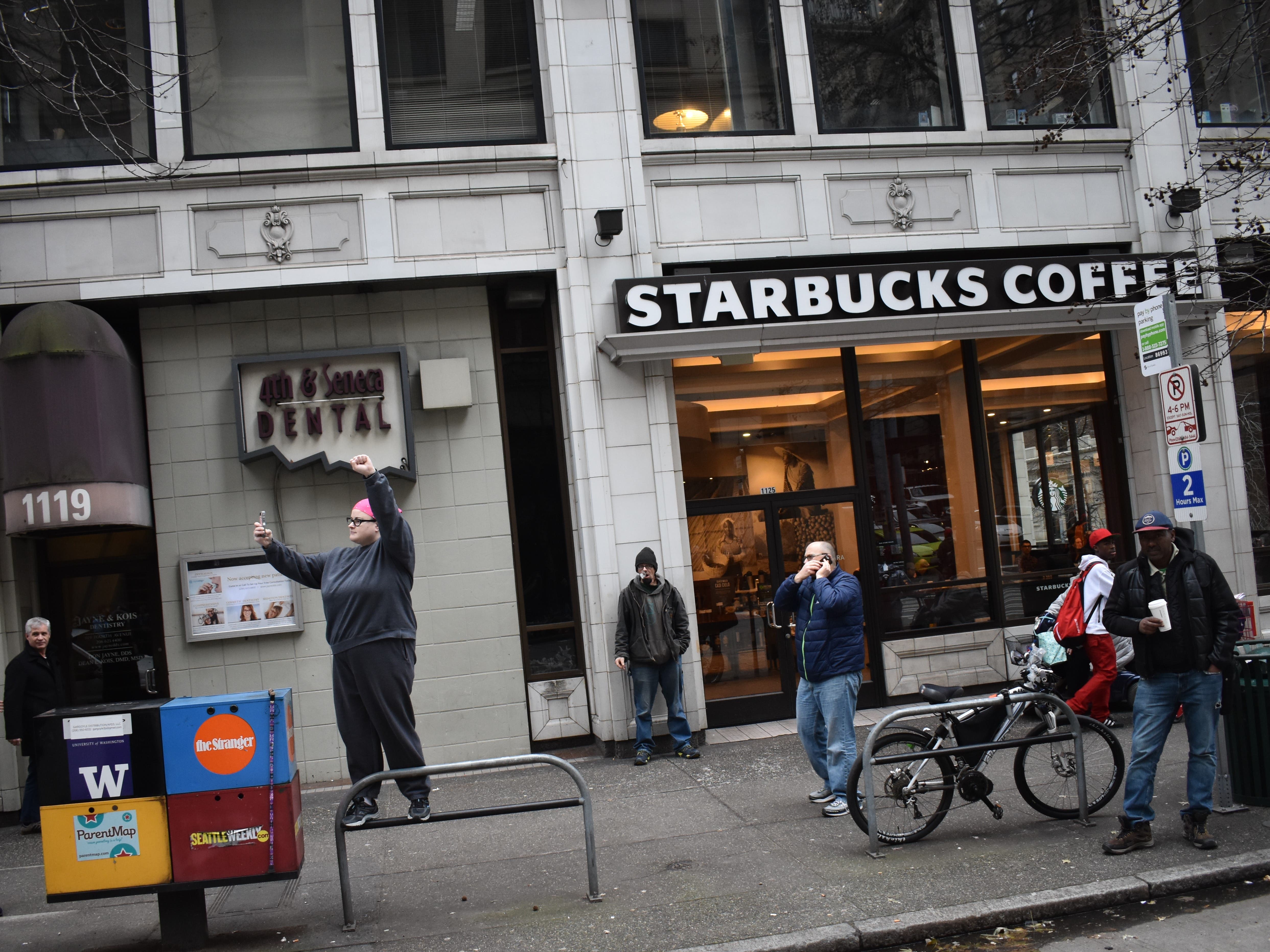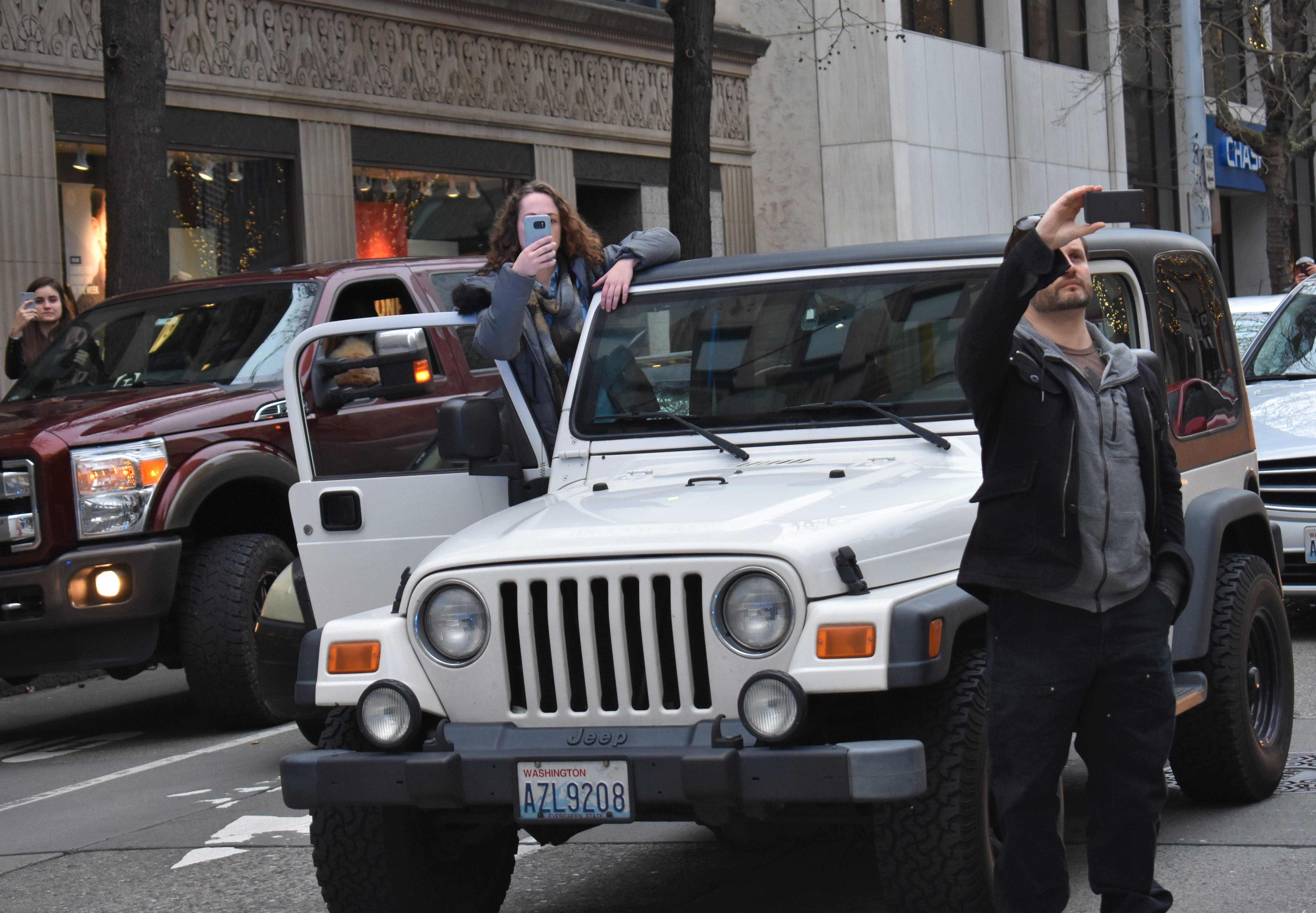 When the protest made it to Westlake, the marchers circled around the intersection of 4th Avenue and Pine Street, chanting and asking onlookers to join in.