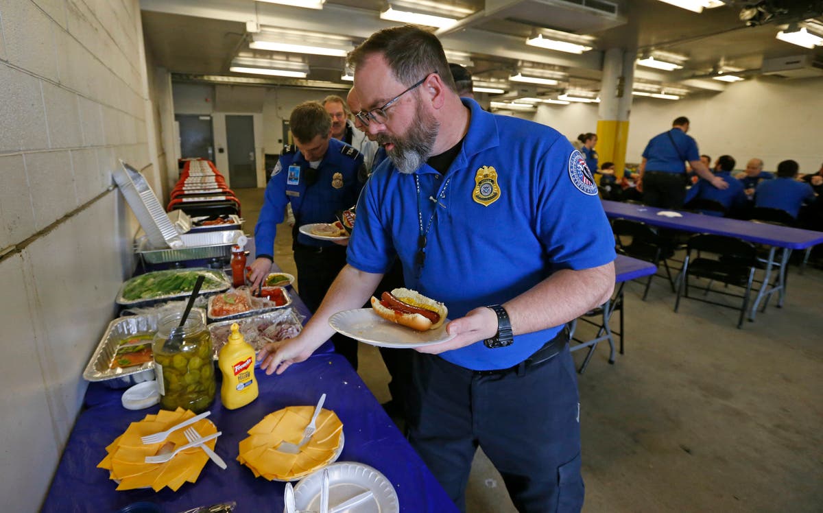 Caption: TSA employee Gary Vetterli prepares a hot dog during lunch at Salt Lake City International Airport on Jan. 16. The government shutdown has generated an outpouring of generosity to TSA agents and other federal employees who are working without pay.
