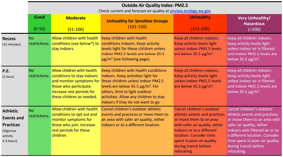 Many school districts, including Seattle Public Schools, kept kids inside and canceled outdoor activities, following recommendations from the state Department of Health to limit students' exposure to unhealthy air.