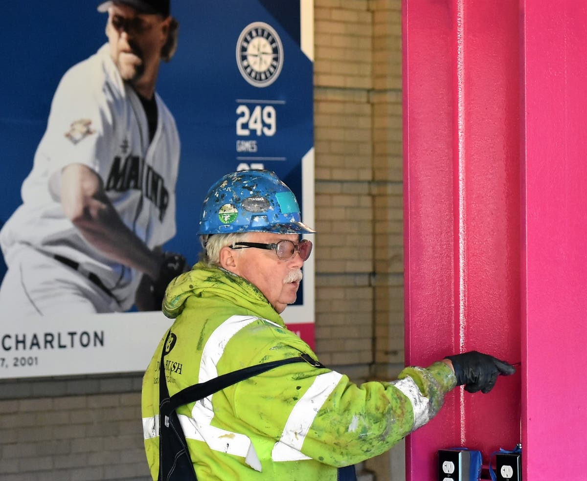 SEATTLE, WA - The smell of stale beer leftover from last season was still in the air Wednesday morning, but workers were busy making changes inside the home of the Mariners as T-Mobile re-brands the stadium in its magenta image.