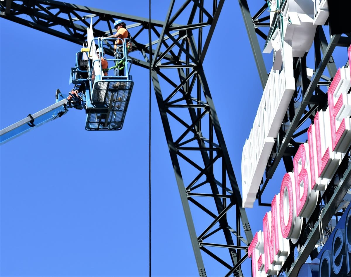 Workers were still installing the larger signs on Wednesday, including the main exterior sign at Edgar Martinez Drive and 1st Avenue.