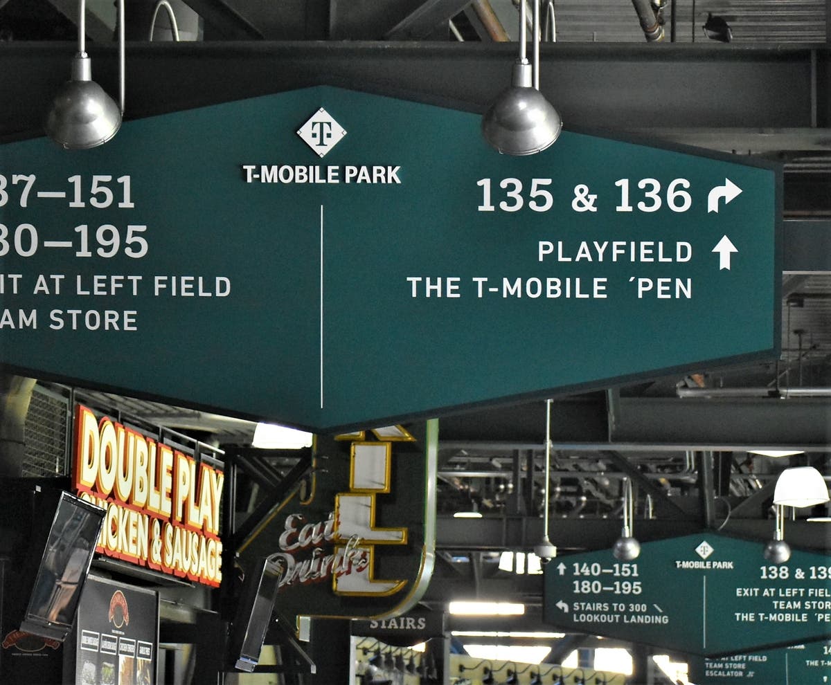 Some overhead signs will remain colored with the familiar Mariners green, but of course with the new name of the park.