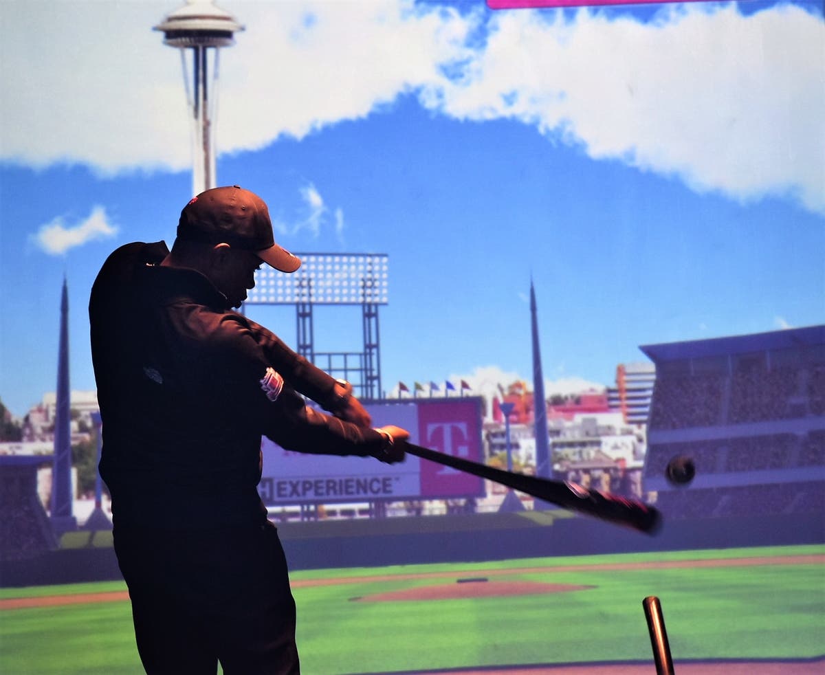 Of course, T-Mobile wants you to buy its products. Near The Pen, you can hit a ball off a tee, and the simulator will tell you how fast the ball went compared to the speed of 5G wireless service.