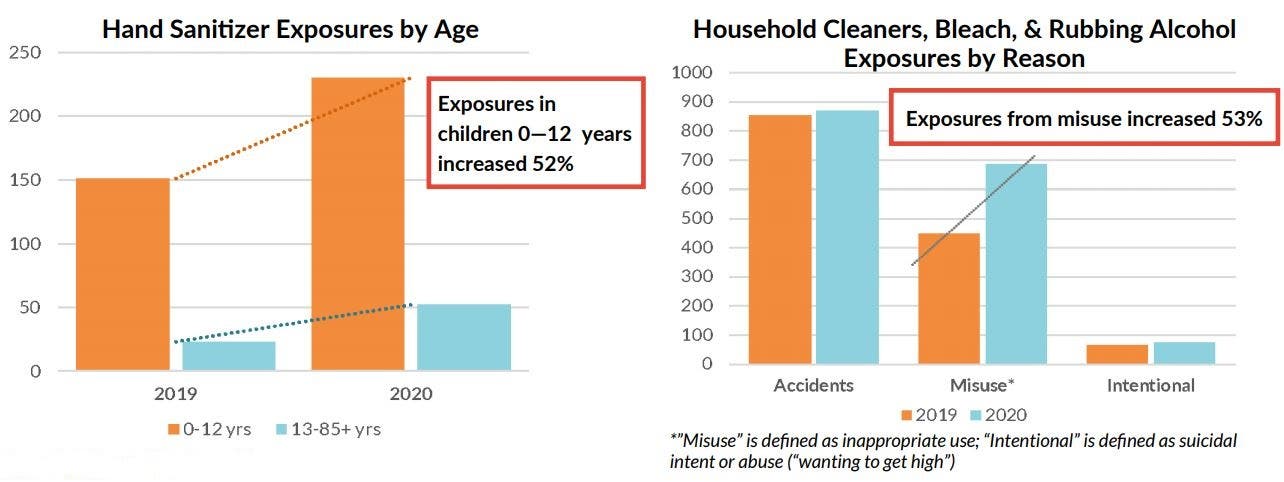 - Hand sanitizer exposures rose 52 percent among children ages 0-12 years old.