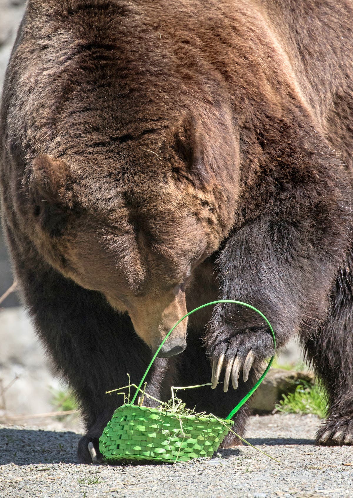 Grizzlies, meerkats, otters, penguins, and other animals nibble on specially made Easter baskets lined with flowers, berries and other favorite treats. The special treats are part of the zoo’s excellent animal care program to help enrich the lives of the zoo’s animals. The safe activities help encourage natural animal behavior, keep animals mentally and physically stimulated and engage zoo visitors.