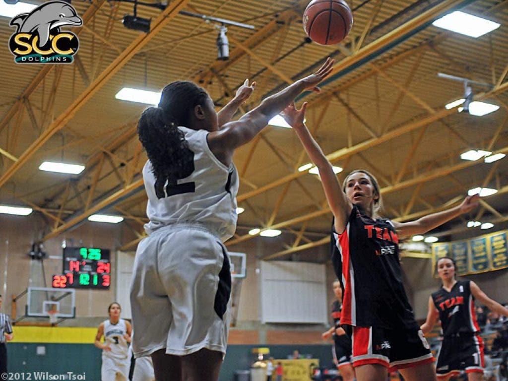 SCC had no double figure scorers and was led by Maile Keanu and Emily Wilbur with 9 points each. Caitlin Roussopolos had 12 rebounds for the Dolphins while Hannah Stanger added 10.