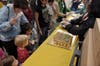 "Everyone should eat some cake," Hutchinson said, as volunteers readied a dozen or so boxes of cupcakes for anxious kids and parents who quickly began forming lines once the mayor gave the queue.