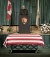 Members of the Seattle Police Department served as an escort detail for the slain officer's family before members of the honor guard slowly marched out of the PLU's auditorium. Six men rolled out the brown-colored casket protecting Anderson's body into the lobby and outside as the ceremony came to a close.