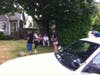 A woman, Rachel James, walked out of the house shortly thereafter. She said she was the 25-year-old girlfriend of the suspect.