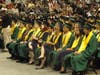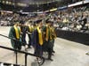 After moving their tassels from right to left, the graduates flung their caps in the air and filed out of the arena in foursomes arm-in-arm to meet awaiting parents, family and friends.