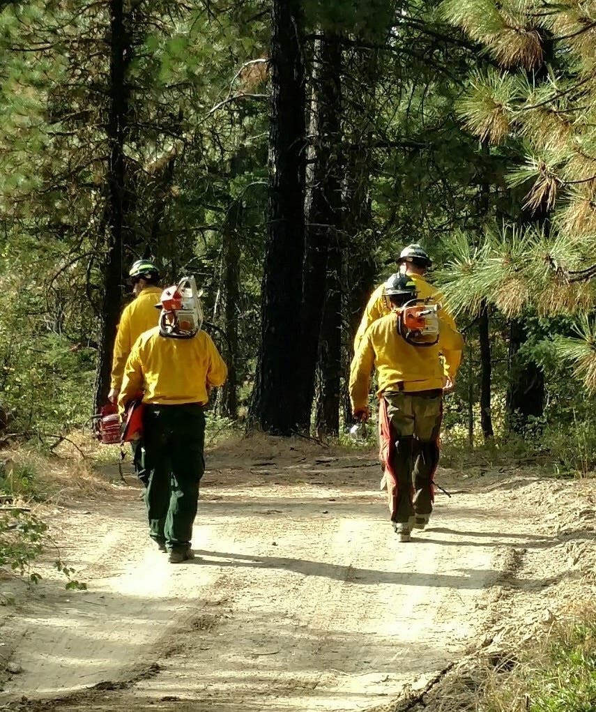 For five days, the firefighters worked on cutting fire lines. That back-breaking work involves cutting down trees and clearing brush to create a fuel-free line the fire can't cross. They worked 16 hour days each day and were able to clear three miles of fire line. They spent nights camping in tents alongside other firefighters.