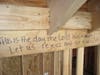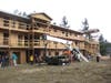 Wearing a blue T-shirt that read, “Vision House. Building Hope. Restoring Lives” Susan Camerer said, “This is what we call a Topping Out Ceremony. The ceremony is a religious ceremony where we thank God for the protection of the workers on the construction site and his provisions so far. The ceremony will climax with an evergreen branch being put at the very top of a wood frame structure.”