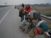 Later that day in the middle of the country side, Andy's bike blew out his back tire twice within 2 hours. Luckily some locals came up to him on the side of the freeway and fixed the bike for about 10 bucks US. When we were broken down, we found ourselves in the middle of nowhere surrounded by 8 Vietnamese men. We couldn't understand what they were saying, eventually they just began to work on the bike. By the end of the day we were exhausted from riding the bikes for over 10 hrs, with large trucks constantly crossing over into our lane. I'm still working on being able to drive in this country, not sure if I'll get the hang of it but I'm confident.