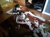 Here we go. What is Sue going to tell me now? My slippers are chewed, stitched back together and re-chewed. My new shoes ruined, her slippers gone (both pair). Today's casualty: a dog bed and a full roll of toilet paper.