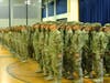 Soldiers from 1st Battalion, 377th Field Artillery Regiment participated in the traditional casing of the colors ceremony Wednesday morning at Soldier's Field House.