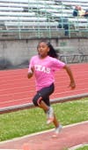 She bested about 40 other athletes in the shot put (7.83 meters) and the 200-meter dash (28.37 seconds). She tied for fifth place in the third event, the high jump (1.25 meters).