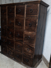 I am an Interior Designer Liquidating all of my Staging Furnishings and Accessories, Lamps, Mirrors, Frames, Baskets, nick naks and the like. This Unique Antique Apothecary is from my collection, and deserves to be in a well-appointed location where it will be appreciated. Overall 35 1/2"W - 14 1/2"D - 41"H. Interior of drawers approx. 6"w - 10"d - 6 1/2"h Total 20 drawers. Each drawer potentially holds 8 DVD cases or 34 CD cases or whatever your creative heart needs to store. Cash Only, please. Best if you can transport - other arrangements possible. $285 or best offer Contact 206-459-7281 if interested.