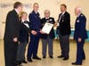 Highlighting the evening was the presentation of the Billy Mitchell award to C/2Lt Aaron Johnson. This award is usually presented by a local dignitary or community leader. In light of the number of dignitaries present that night, the award was co-presented by CAP Northwest Area Commander LtCol Paul Rowe, previous Northshore squadron commanders LtCol Karen Walter and Maj. Linda Garross, current squadron commander Capt Charles Jackson, and the squadron's first Cadet Commander, Jim Knisley.