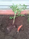 I bought a hybrid variety - Sweet 100 and an heirloom variety – Yellow Pear from in Woodinville. Both were fairly large starts in a 1 gallon container. Before planting, I amended the soil in my raised bed with organic compost. Next, I pinched off the leaves and flowers from the lower part of the plant, 3 inches from base. Nope, that’s not crazy! Planting a tomato start on its side has certain advantages. The stem that is buried will sprout roots and create a stronger root structure that absorbs more nutrients. So, I created a shallow trench, laid the plant on its side and buried the stem along with the roots. I ran the water hose on low pressure and soaked the soil well. This weekend I plan to setup drip irrigation in my raised bed.