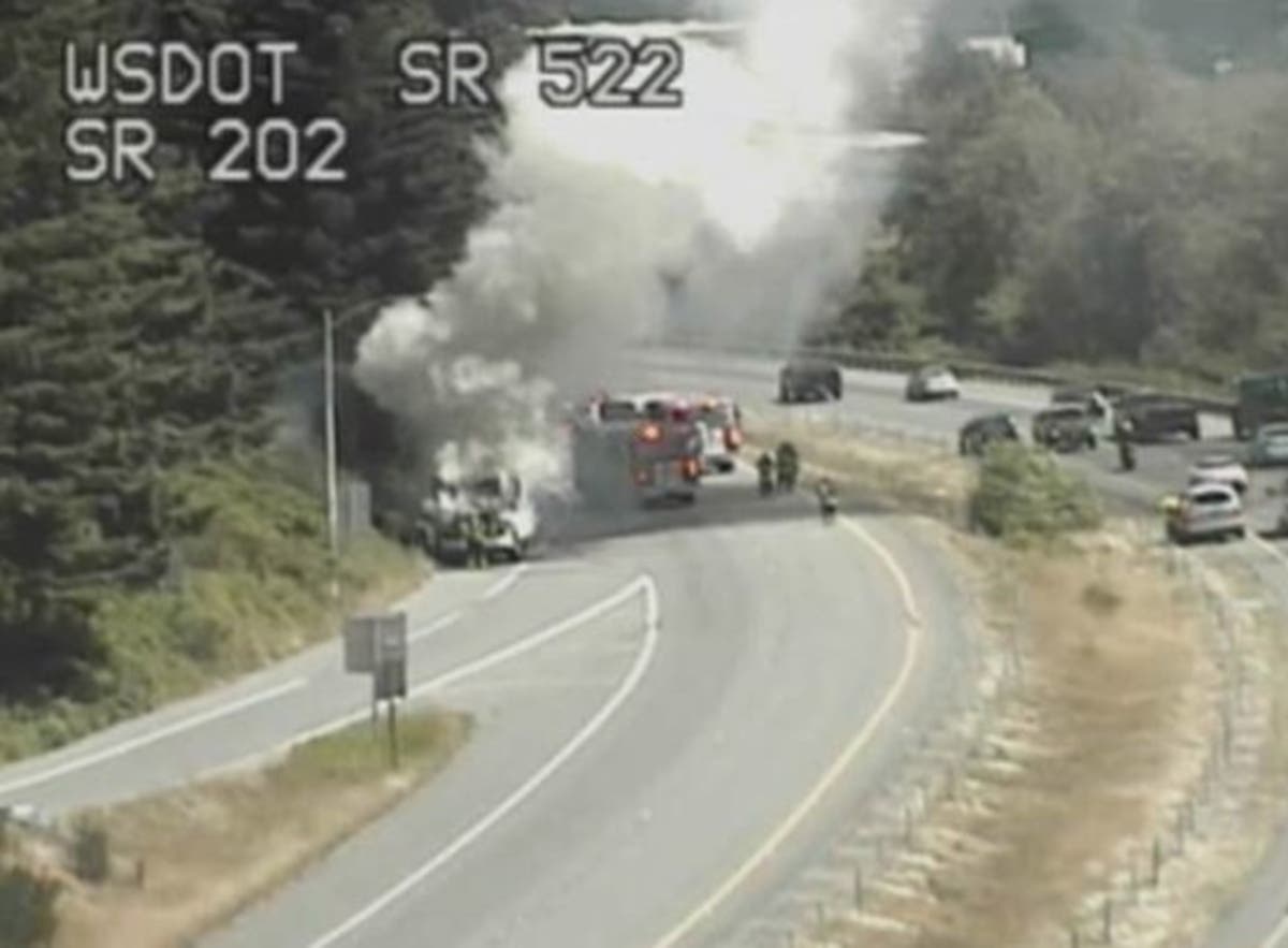 The fire was burning near the SR 522 intersection with SR 202. The westbound lanes will remain closed until firefighters can extinguish the blaze.