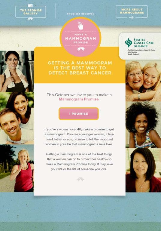 The Seattle Cancer Care Alliance also wants women to Make your Mammogram Promise.