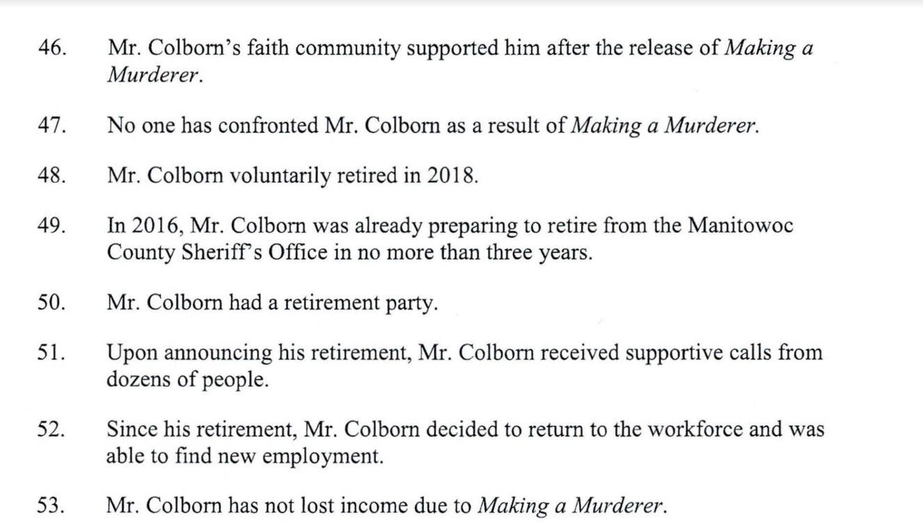- "Mr. Colborn has not watched Making a Murderer in its entirety."
