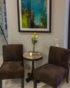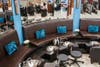 Pedicurists will be able to see the front entrance with a dramatic new mirrored wall, and the circular staircase that dominates the spa has been re-carpeted in chocolate brown, the color of new furniture.