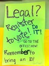 Handmade posters hung on the walls at last week encouraging students of legal voting age to register.