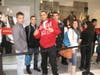 Kristin Eul, Katie Gerls and Andy Krachtt - all students from Greendale High School - were the first in line. Local schools were closed today and tomorrow for a teachers' convention, so the three friends said they arrived at the mall at 7:45 am, before the mall itself opened. At 8:00 they were let in and took their place at the front of the cordoned-off line by H&M's entrance.