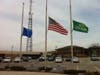 The flags at the Law Enforcement Center fly at half-staff today in honor of fallen police officers.