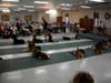They showed us some warm up exercises such as the basics of sit and stay. It was amazing how the dogs stayed in their spots despite their owners leaving the room and the host of the show causing all kinds of distractions. They not only fetched but they would only fetch a dumbbell that had their owner's scent on it (well some of them tried to fetch ice cream instead).