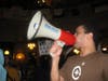 They have set up a camp in the center of the rotunda. They have peanut butter and blankets, bottled water and a two-liter bottle of mouthwash. They stand on buckets with bullhorns. They slam on drums, cowbells and large white buckets. Setting a constant rhythm for the protest.