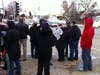 Nearly 50 protesters gathered outside the building to demonstrate their disapproval of the bill and how it was passed.
