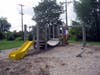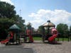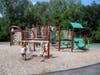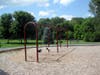 What: Maple Grove has four playsets with a good variety of activities for younger children especially. One playset had a broken bridge with plywood blocking access. All were a bit worn with new wood chips underneath. Swings were removed when we were there.