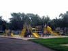 What: Part of the Milwaukee County Park System, the 47.4-acre Zablocki Park is a busy park that offers a lot more than just a playground. As a matter of fact, the playground is probably the least desirable part of this park as it is usually filthy with litter and graffiti. We live within walking distance and rarely visit because of the condition of the playground. It is hands down the dirtiest park we visited (and consistently so). Kids do like the equipment and amount of swings, though.