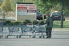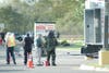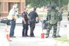 Hudson Police officers shut down Crest View Drive at County Market while bomb squad personnel worked to remove a suspicious package in the grocery store parking lot.