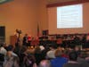 Superintendent Mary Bowen-Eggebraaten briefly addressed the large crowd on the factors that went into the district deciding to close school on Feb. 18.