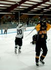 Junior forward Lawrence Pruitt scored 6:10 into the third period to break a 2-2 tie. Then Dylan Haskins, another junior forward, took his own rebound and lofted it over the shoulder of the River Falls goalie with 25 seconds remaining, to put the game away.