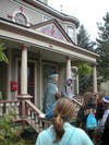 At each location, students are greeted by SCCHS volunteers who present scripts on one or more of the characters. “Many of the homeowners really get into the tour and invite students into their porches and talk about the home or its restoration,” said Rushman.