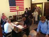 The voting line at the United Methodist Church in Hudson has been holding steady at about 30-45 minutes for District 4 voters, while District 3 voters have a much shorter line, according to Election Inspector Joan Christopher.