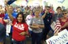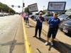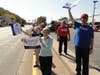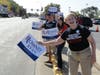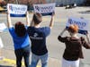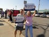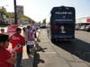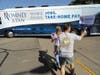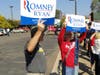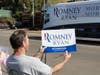 Romney arrived in a large Romney-Ryan campaign bus to dozens of people waving campaign signs and flags. Inside, Romney addressed the volunteers, delivered lunch, posed for photos and addressed the media.