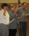 Oath of Office: Troy Town Clerk Sharon Provos swore in Jan Cuccia, Sue Warren, Ray Knapp, who won board seats in last week's election.