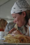 Each person in a five-member team must eat a full pound of spaghetti.