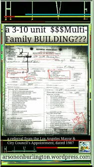 Otherwise, without my ARSON ON BURLINGTON wordpress site, LAFD #11, THE OFFICE of Asst. Fire Chief Emile Mack, was robbing the public by not disclosing evidentiary fact as well as factual information deemed to be common knowledge as is described by the evidence codes. Rather, LAFD arson investigation report #2013-07-0113, brings to light a notion to the contrary; which otherwise creates the larger picture of retaliation for my having cooperated with the municipal housing authority's investigation of fraudulent real estate commercial crimes. In 2014, I had reported to LAPD Headquarters Commercial Crimes Investigator Det. :Agent STICE< funding a larger raqueteering scam for millionaire foreigners living an exorbitant lifestyle out of context with Federal housing Law and not in league with regulatory tax records being filed and maintained with the municipal, California state and U.S. Federal taxation guidelines.