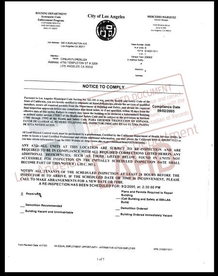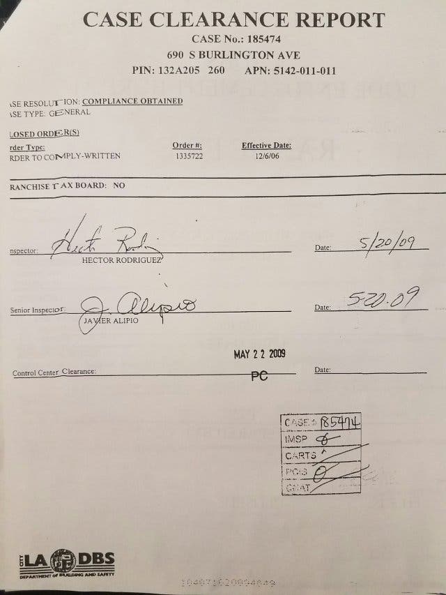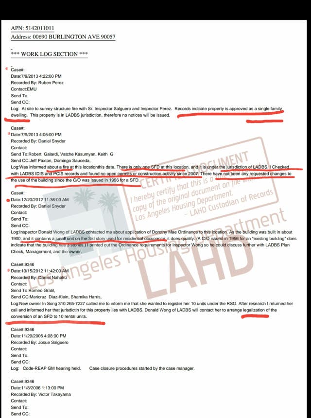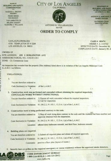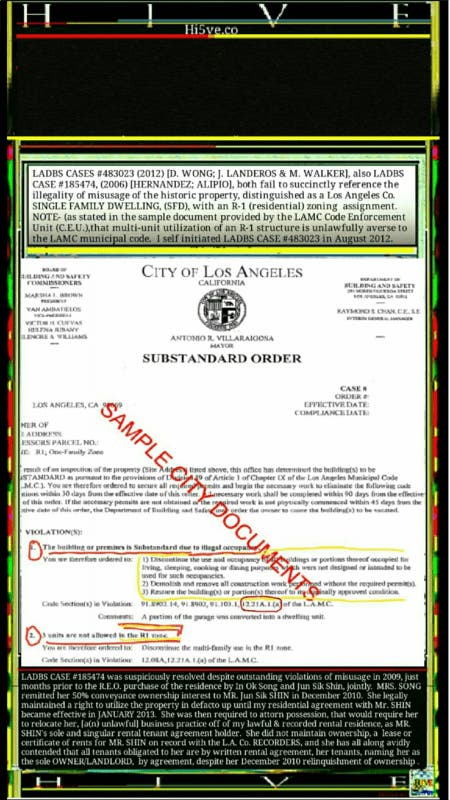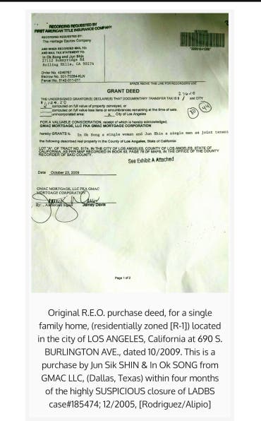 (that was the premise for a red flagging from the Housing Authority to the Building and Safety, which sparked LADBS case log #185474, (2006-2009, four months prior to the Song fiasco REO purchase, (10/2009).