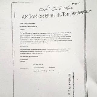 Immediately, post arson, I was less skeptic of my situation amidst the furor of snowballing municipal ‘oversights’ that began as a 3-1-1 call to request LADBS code enforcement inspection of my home at 690 S. Burlington, although again, I was literally struggling with buckets of municipal certified documents against IN Ok Song, including LADBS case #483023 and LAHD case #0468.