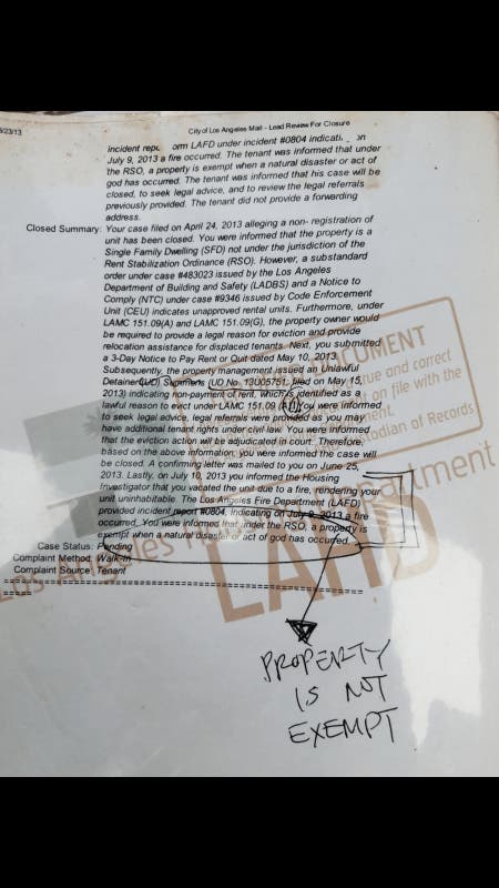 I opened case HCIDLA case #173778 in April 2013, (7 weeks prior to incident).