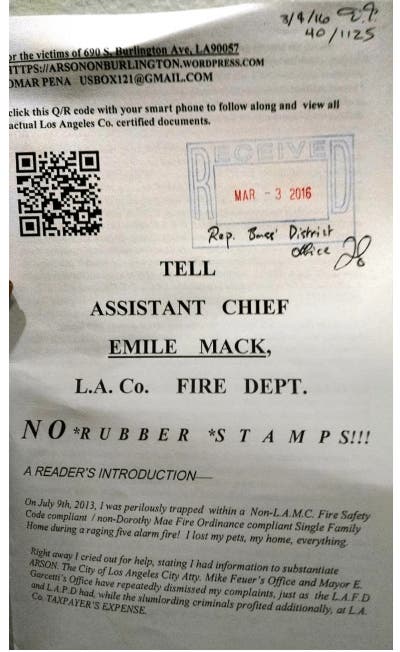 Ultimately, the original LAFD incident report was fascimile transmitted to my DCIHLA caseworker, at my insistence post incident. Although,